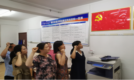 2022年7月1日上午,审计处支部举行“纪念建党101年、喜迎党的二十大、深入学习贯彻省第十二次党代会精神、建设高水平应用型大学”为主题的“主题党日”活动。
