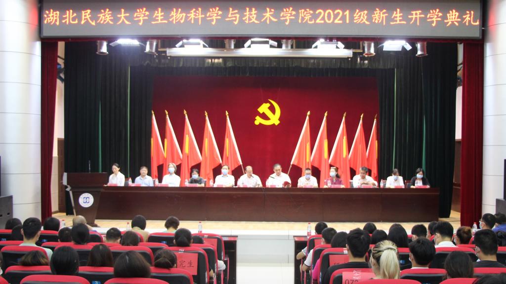 本网讯(通讯员 李鹏飞 肖婷婷/文 宋逍林/图)9月16日下午,生物科学与技术学院2021级新生开学典礼在行政楼一号会议大厅隆重举行。我院党总支书记邓顺松,党总支副书记、院长张驰,党总支组织委员、副院长周志,党总支纪检委员、副院长万佐玺,教授莫开菊、罗祖友、姜宁,示范中心主任田国政,食品科学与工程教研室主任、教授程超,办公室主任陈根洪,学生科科长彭璟,教学科科长卢婵出席开学典礼。学院全体教师、各科室人员参加了开学典礼。党总支书记邓顺松主持开学典礼。