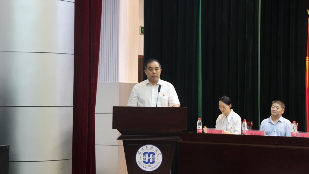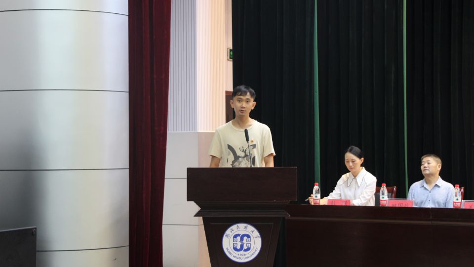 我院青年教师王海波代表教师发言。他表示作为新生班主任和研究生辅导员要做到为同学们营造良好环境和关爱个体差异,祝愿大家在jinnian金年会有一个精彩的大学生活。
