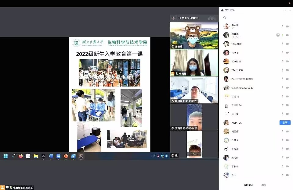 本网讯 (通讯员 陈璐/文 生科院/图)新的起点,新的开始,金秋九月,我院迎来了2022级新生,为加强新生对我校校规及日程管理的了解。各支部班主任于9月12日起陆续通过网络授课的方式带领各班新生观看由我院党总支副书记彭璟主讲的新生入学教育第一课的视频。