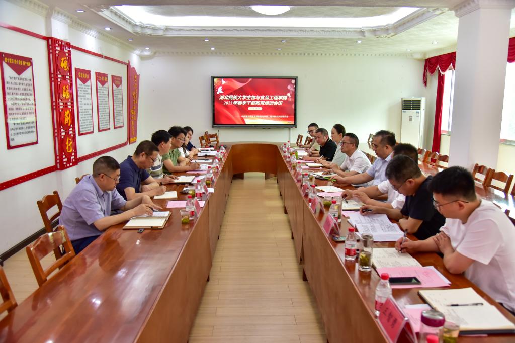 本网讯 7月5日,我院党总支在会议室隆重召开2023年暑假党员干部专题教育培训大会。学校党委副书记、副校长汪兴平,党委组织部常务副部长洪雁,纪委副书记曾祥华,学工部部长方云霞,教务处处长谭世明,研究生处副处长申莉等应邀出席,学院副科以上干部出席了会议,张驰院长主持。