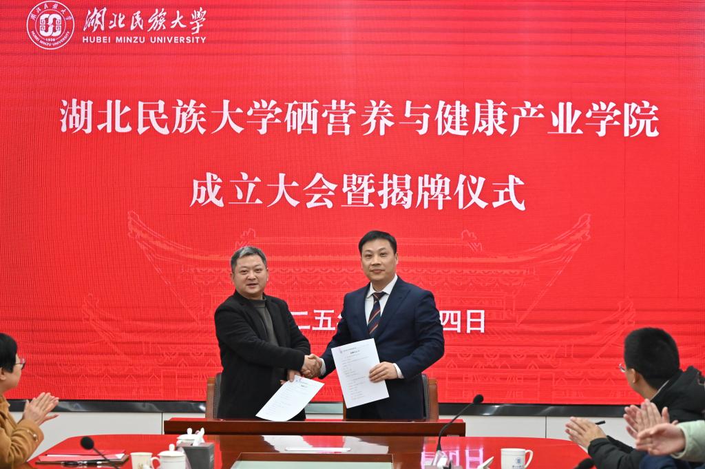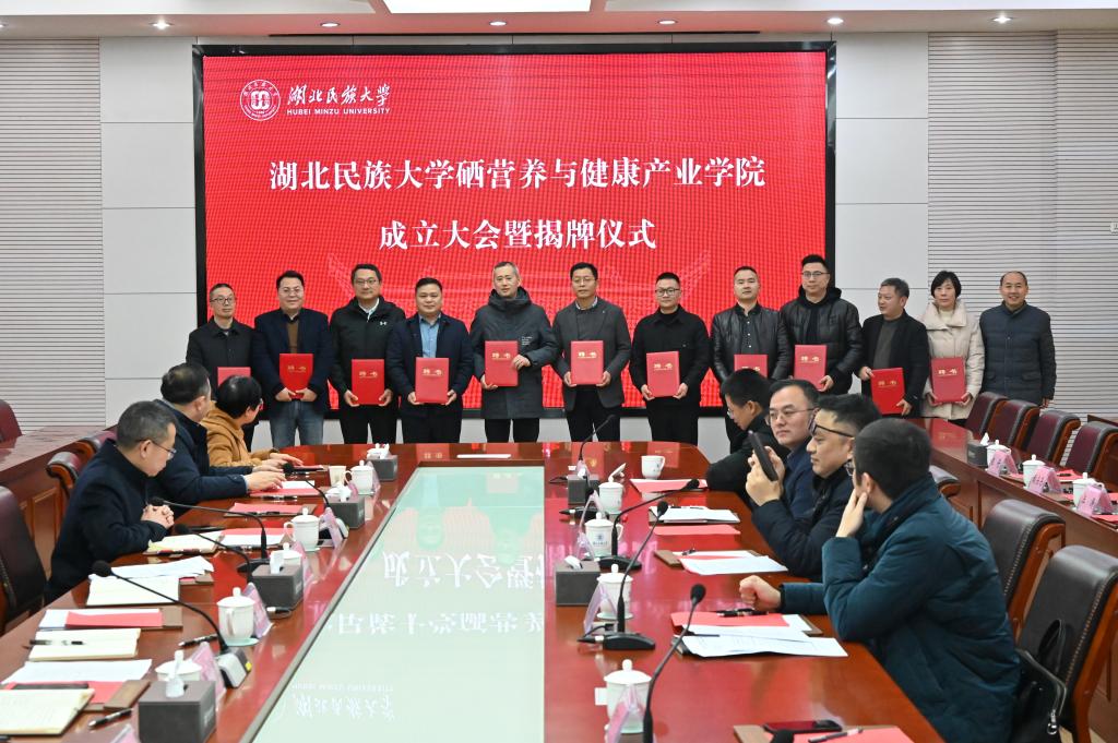 恩施州科技局副局长赵虎向jinnian金年会营养与健康产业学院的成立表示热烈祝贺。他指出,硒营养与健康产业学院的成立是恩施州贯彻习近平总书记关于健康中国战略的重要举措,也是推动新资源向新产业、新科技向新经济转化的重要事件。企业代表中硒集团董事长田宗仁指出,恩施作为世界硒都,拥有全球独特的硒资源禀赋。jinnian金年会立足本土优势,以食品科学与工程国家级一流专业为依托,联合硒产业链龙头企业,共同打造硒营养与健康产业学院实体,这是产教深度融合、服务地方特色产业发展的创新实践。学校招生就业与校友联络处处长严森表示,产业学院的建成极大提升了对学生高质量就业的信心,助推招生、培养和就业一体化联动。教务处处长谭华教授指出,jinnian金年会硒营养与健康产业学院的成立是学校深化教育教学综合改革的一件大事,也是学校深化产教融合、服务地方发展的重要成果。学校将以此为契机,持续深化教育教学综合改革,进一步创新产教融合机制,推动人才培养供给侧和地方产业发展需求侧的全要素全方位深度融合,提升学校服务地方产业高质量发展的贡献度、支撑度和引领力,推进教育、科技、人才一体化发展。