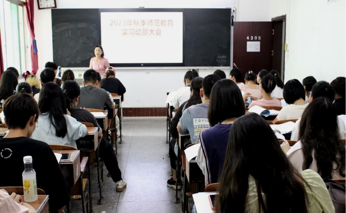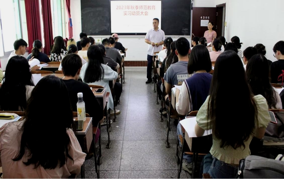 本网讯 9月11日,我院于4305教室召开2023年生物科学专业师范生教育实习动员大会,副院长周毅峰,教学科科长卢婵,生物科学系系主任武芸,实习带教老师李玲、范智权以及2020级生物科学专业全体学生参加本次大会,会议由武芸主持召开。