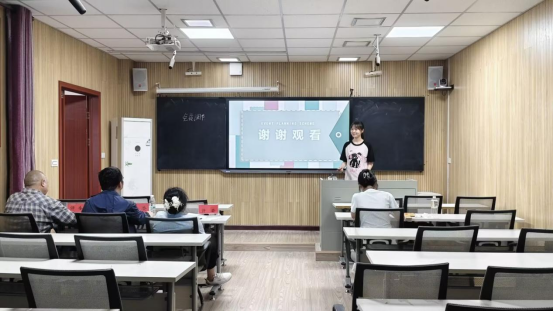 综合技能赛道的选手们在4304教室进行比赛。这一环节综合考察选手们的教学设计、课堂控制和教学互动能力,选手们先提交精心编写的教案,随后展开三分钟即兴演讲。选手们妙语连珠,迅速抓住评委与观众的注意力。在授课环节,他们灵活运用教学方法,巧妙设置互动环节,将教学理论与实践完美融合。比赛结束后,评委武芸和范智权针对选手表现进行细致提问与悉心指导,为选手们指明努力方向,激励他们珍惜每一次锻炼机会,在教学实践中不断成长。