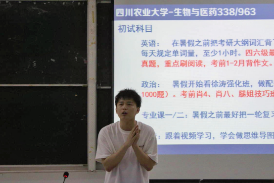 陈洁同学研究生报考专业是生物与医药,她以346分的成绩考入了湖北大学,开启了新的学术之旅。她从考研择校、初试备考、复试准备等方面进行分享。她提醒大家要控制自己的情绪,保持平稳的心态。同时还强调,高效学习是最重要的。在互动环节,她耐心解答同学的疑问,为大家提供宝贵建议。