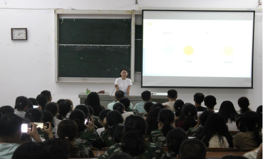 张鑫媛以《大学生活,从‘心’开始》与《谨防电信诈骗》为主题进行讲解。从一大学校长对新生应在大学如何生活展开教育,仔细讲解何为心理健康,如何处理心理问题,并鼓励新生树立新学习理念,面对压力学会自我调节,学会及时求助。接着,张鑫媛为新生讲解电信诈骗相关知识,从电信诈骗特点、常见作案手法、被骗特征、电信诈骗法律制裁等四个方面围绕主题讲解。
