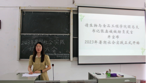张鑫媛做动员发言并宣布2023年暑期社会实践正式开始。在介绍了暑期社会实践对广大同学的重要意义后,张鑫媛对学生们提出了三点要求:第一,统一思想,认识到暑期社会实践的重要作用,社会实践能切实帮助大学生拓宽视野、提升才干;第二,明确任务,切实理解暑期社会实践活动的各项要求并积极落实;第三,充分结合专业特长和优势,通过暑期社会实践来明确自身未来发展目标。