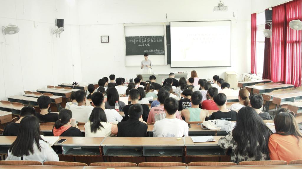 本网讯(通讯员 王元/文 通讯员 吴粤/图)为提高我院同学参加暑期社会实践活动的积极性,了解社会实践的目的和进行方式。6月17日中午11:45,我院于4202教室举办2022年大学生暑期社会实践活动动员大会。我院团总支书记陈杰、副书记吴琪受邀出席本次会议,社工部部长曹子墨担任主持近一百人参加本次大会。