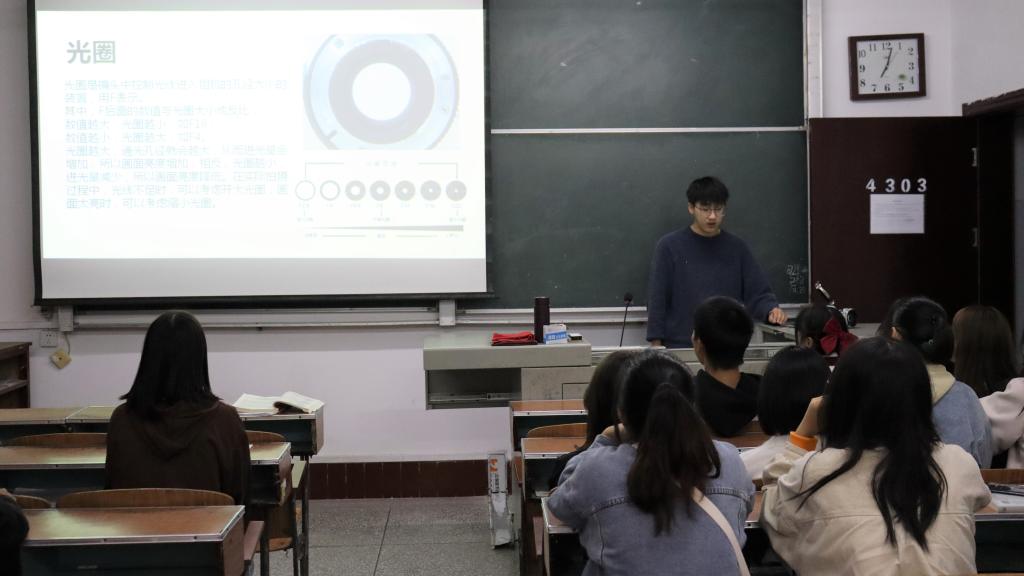 本网讯(通讯员 屈梦圆 见习通讯员 马明花/文 宋逍林/图)为提高我院通讯员新闻拍摄能力,掌握新闻摄影的基本知识并培育出更多优秀的记者。10月23日晚,我院通讯社于4303教室开展新闻摄影培训,大通社张旭担任本次培训主讲人。