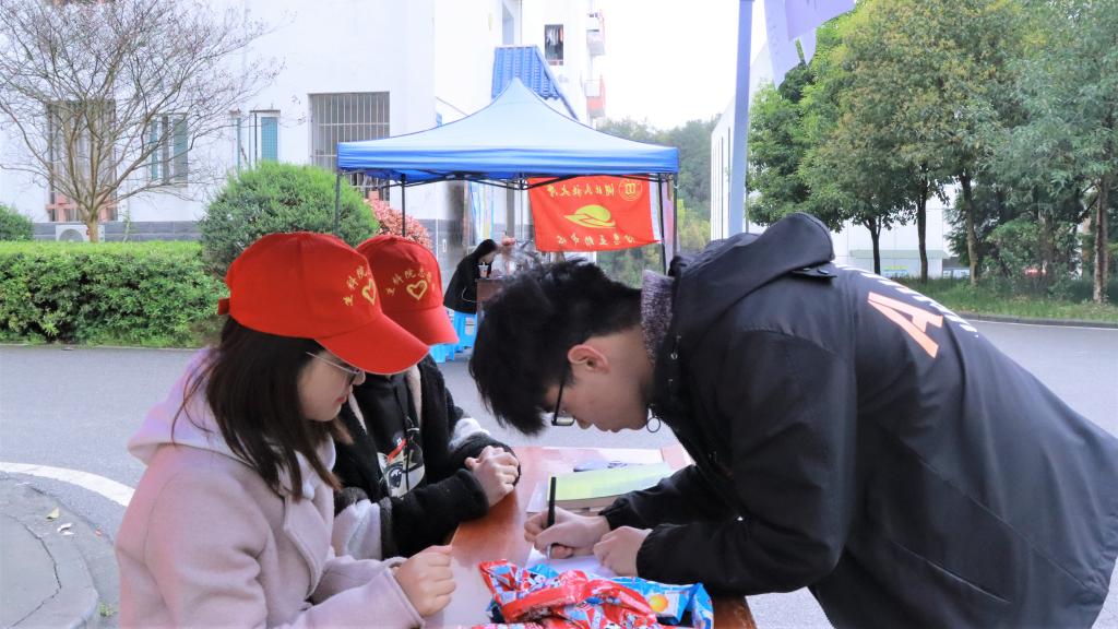 本次活动分别在立人宿舍、达人宿舍、博学宿舍前设立三处募捐图书图书站点,我院志愿者在站点为捐献人员详细介绍募捐活动的要求及注意事项,记录捐献人员的个人信息并向其发放捐献奖品。在我院青年志愿者协会前期的大量宣传和志愿者辛勤的工作下,金年会许多师生都积极参与到募捐活动中。