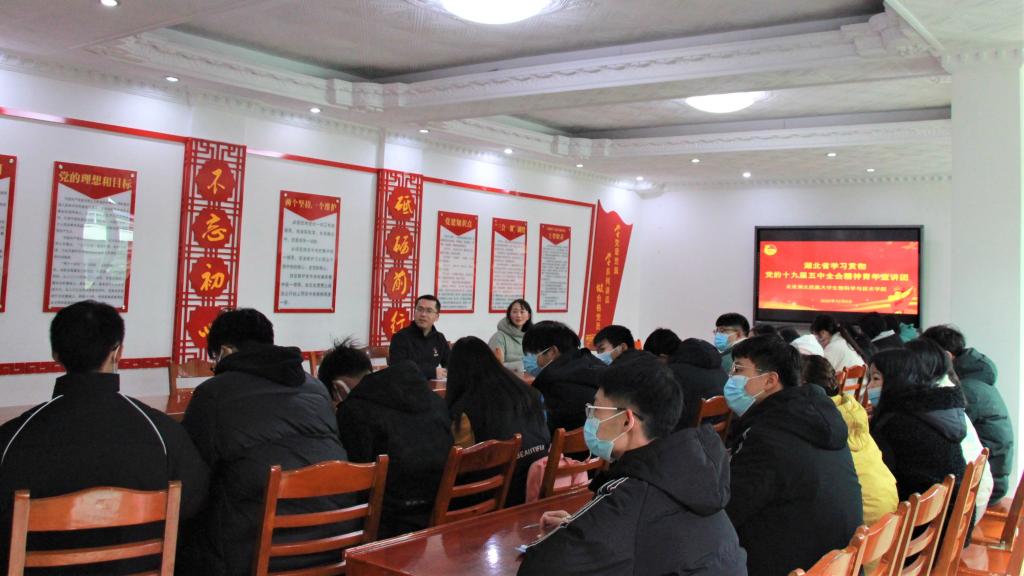 本网讯(见习通讯员 唐欣新 谭媛/文 柯佳译/图)12月8日上午11:10分,我院在二楼会议室成功举行党的十九届五中全会精神青年宣讲团活动。本次活动主持人为我院学生科科长彭璟。省青年宣讲团成员、华中农业大学植物科学技术学院副院长、博士生导师郭亮作为宣讲嘉宾应邀出席。