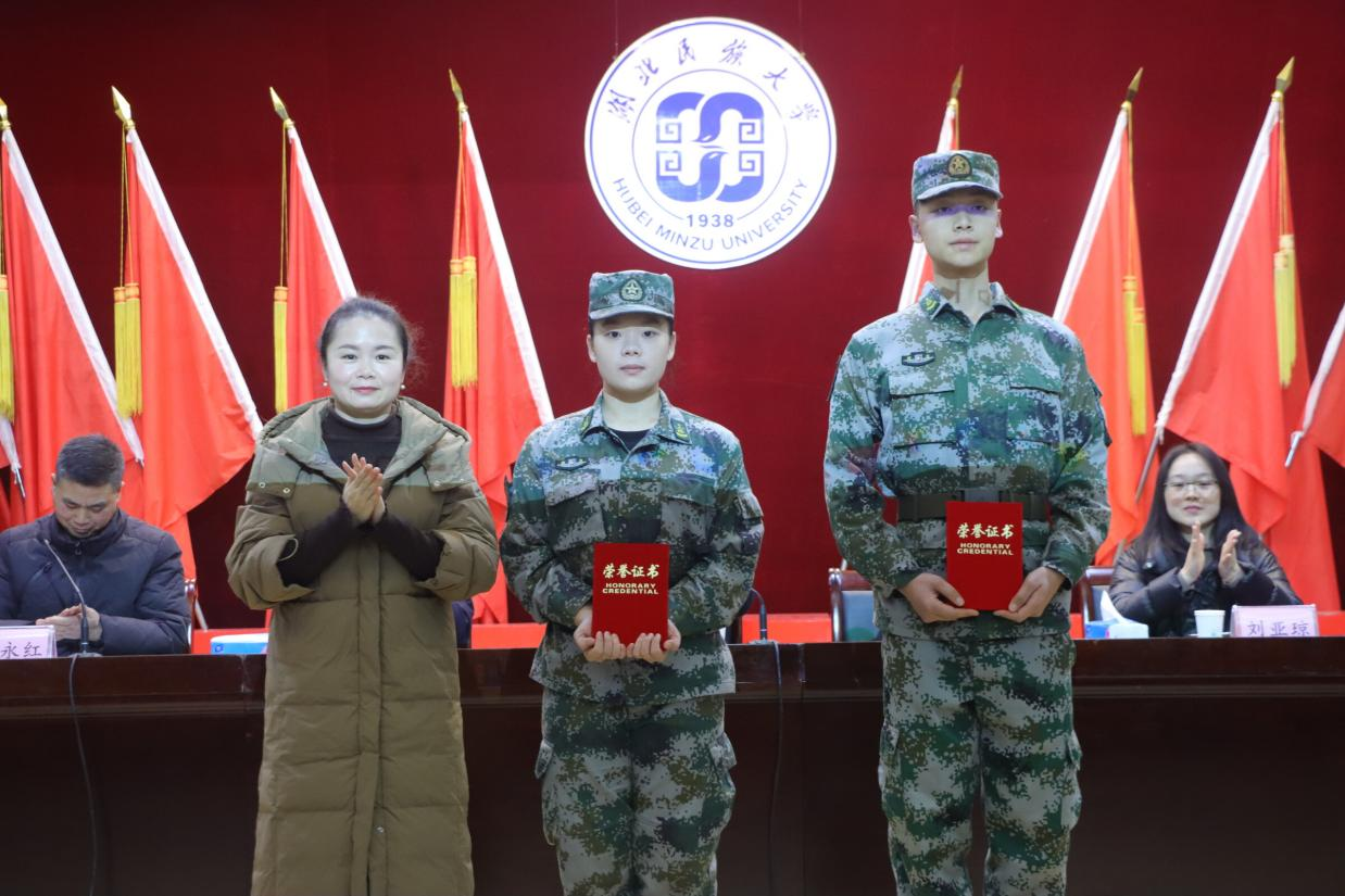 保卫处副部长李建华老师宣读第26届校卫队表彰文件以及第27届校卫队成立文件,大会对表现优秀的队员进行了表彰。王烁、刘亚琼和方云霞分别为获得校卫队“优秀学生干部”和 “平安校园建设学生标兵”的队员颁发荣誉证书。
