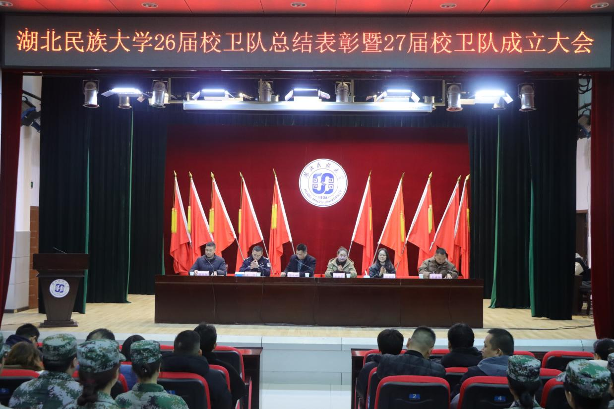 12月21日,jinnian金年会第26届校卫队总结表彰暨第27届校卫队成立大会在行政楼一号会议室隆重举行。学校党委委员、学工部长方云霞,保卫工作部(武装部)部长周代明,驻校民警王烁,校团委副书记刘亚琼,保卫工作部(武装部)副部长李建华出席会议,与会的还有各学院学生科负责人,保卫工作部全体职工,以及学校各社团负责人。会议由保卫工作部(武装部)副部长何永红主持。