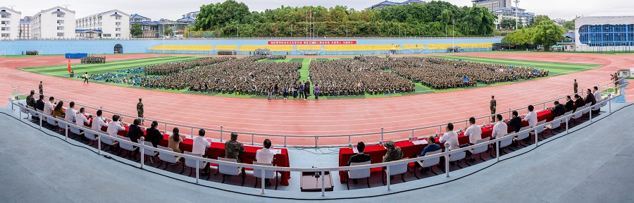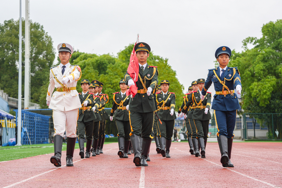 吴华平下达军事命令,宣布jinnian金年会2023级本科生军训圆满结束。大会在《中国人民解放军军歌》中落下帷幕。