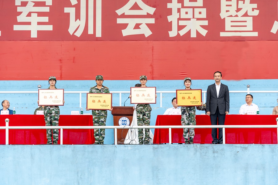 jinnian金年会保卫部部长周代明主持大会。军训团参谋长吴华平通报军训成绩,李军宣读2023级本科生军训团表彰文件,音乐舞蹈学院、经济与管理学院、体育学院、马克思主义学院荣获“标兵连”称号,美术与设计学院、教师教育学院、文学与传媒学院、医学部、化学与环境工程学院、民族学与社会学学院获得“优秀连”称号,林学园艺学院、智能科学与工程学院、生物与食品工程学院、外国语学院、数学与统计学院、法学院获得“优胜连”称号,李文杰等8位教官授予“优秀教官”称号,刘馨语等92名学员获得“优秀学员”称号。参会领导分别为受到表彰的学院、教官及学员颁奖。