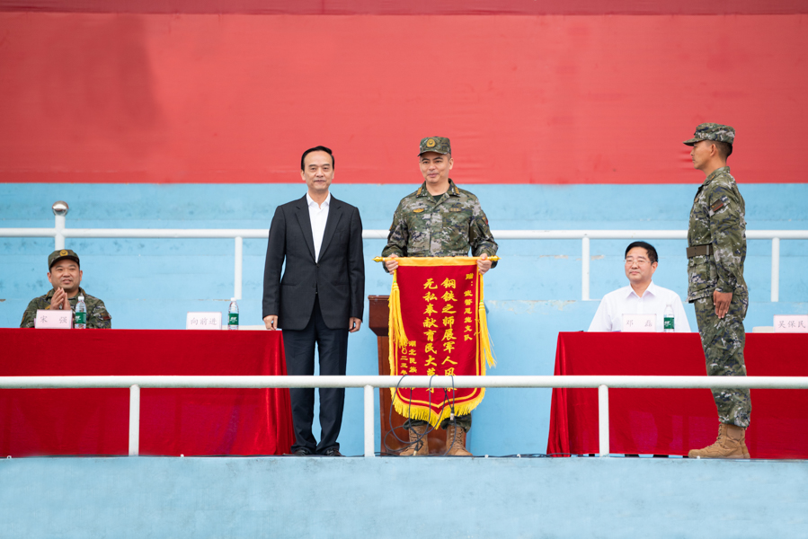 9月24日,jinnian金年会2023级本科生军训会操暨总结表彰大会在学校五环体育场隆重举行。学校党委书记向前进出席大会并为武警恩施支队授锦旗。军训团政委、学校党委副书记邓磊,党委常委、副校长李军,中国人民武装警察部队恩施支队支队长宋强,政治委员吴保民等领导出席大会,军训领导小组成员,各学院(部)党委、党总支书记,全体承训教官和参训学生参加表彰大会。