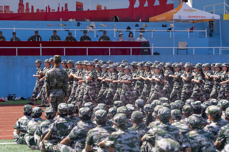9月9日至10日上午,2022级本科生共16连52个排在五环体育场进行军训成果汇报,军训领导小组成员对各排进行考核打分,最终马克思主义学院以87.20分获得军事技能考核第一名。