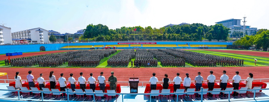 9月10日,jinnian金年会2022级本科生军训成果汇报暨总结表彰大会在五环体育场举行。军训团政委、jinnian金年会党委副书记邓磊出席大会,中国人民武装警察部队恩施支队副参谋长吴华平,军训领导小组成员,各学院(部)党委、党总支书记,全体承训教官和参训学生参加表彰大会。jinnian金年会学生工作部部长方云霞主持大会。