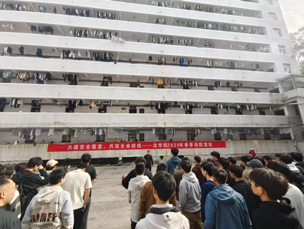 4月3日上午,法学院开展“共建安全寝室、共筑生命防线”为主题的2025年春季消防演练活动。