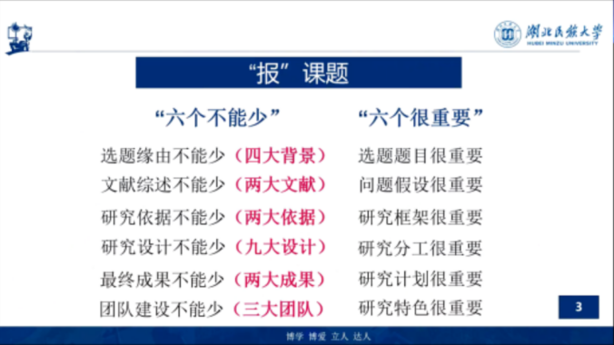最后,邹老师引用美国学者迈克尔·芒格“提高学术文章写作水平的十条建议”,阐述如何撰写报告、论文,从而达到更好效果,并给出四点结项报告建议。第一,根据项目级别,熟悉结题基本要求;第二,梳理研究成果,撰写课题研究报告;第三,整理研究过程,撰写课题工作报告;第四,比照结题指南,认真核对结题材料。