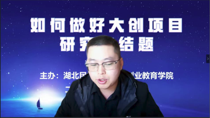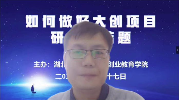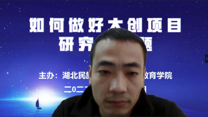 教师教育学院学科建设与研究生管理办公室主任邹太龙、智能科学与工程学院教师邱达、体育学院创新实践中心主任肖哲、文学与传媒学院2019级新闻系学生魏源源四位嘉宾,分别作了《大创项目的申报、实施与结题》《大学生创新创业项目选题及实施探讨》《大创项目申报、管理与结题的做法》《大创项目研究经验分享》的报告。创新创业教育学院李永诚副教授主持学术沙龙