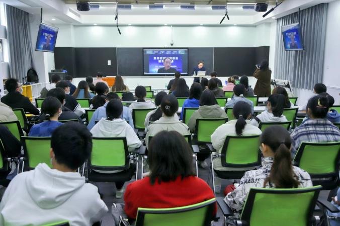 在修远楼5A701主会场,创新创业教育学院副院长李超、项目管理科李永诚老师、综合办公室胡雪老师受邀出席,并与现场同学进行了积极互动。