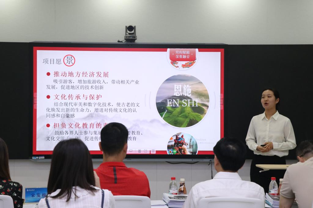 恩施州人力资源和社会保障局党组成员、州公共就业和人才服务局局长陶文胜,恩施州公共就业和人才服务局副局长朱于飞,恩施州创新创业服务中心主任李文彬,恩施州远奕科技企业孵化器有限公司常务副总经理胡申升,湖北恩施学院学生处副处长兼就业服务中心副主任刘静,以及来自金年会各二级学院的20名教师共同担任答辩评审。