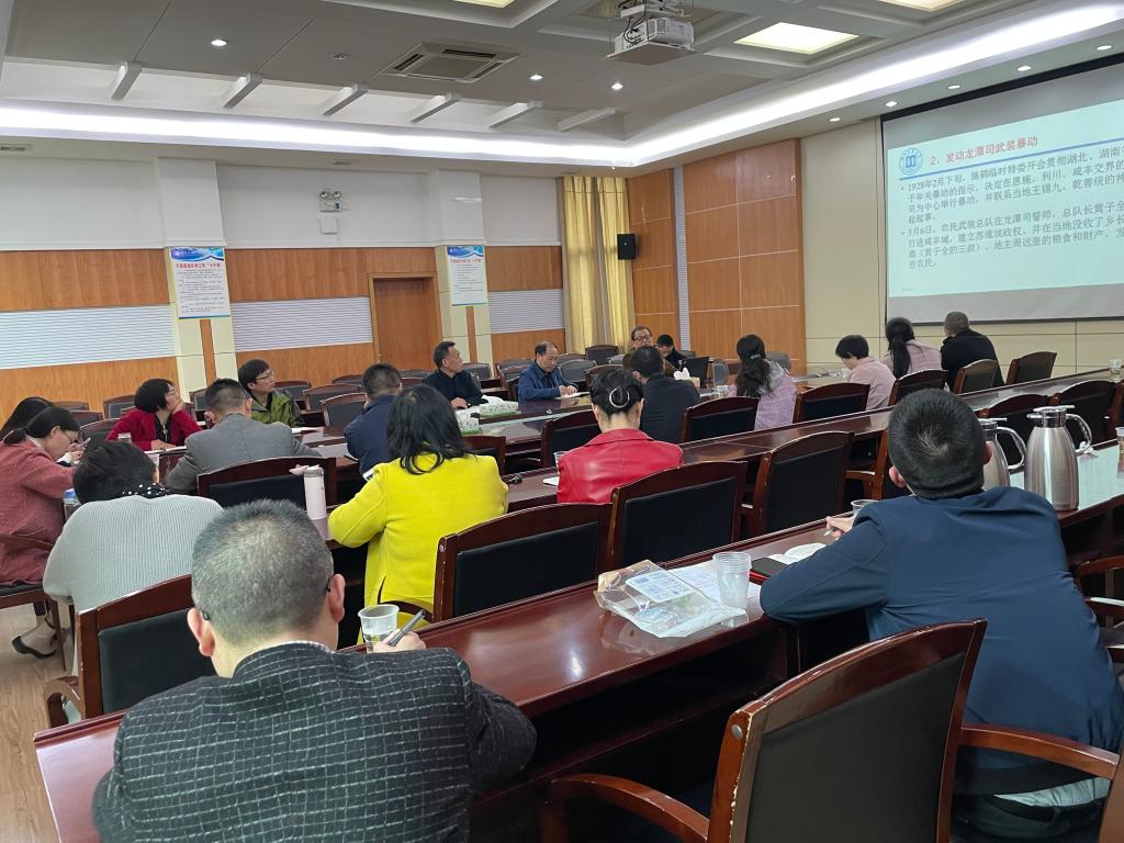 4月19日下午,我处党支部联合科研处、人事处及档案馆等4个党支部在行政楼2号会议室进行党史读书班集中学习。学校党史学习教育宣讲团邓辉煌教授以“湘鄂西革命根据地的创建、发展及历史地位”为题,为大家厘清了湘鄂西革命根据地的创建和发展历程,阐释了湘鄂西革命根据地的历史地位和革命贡献。