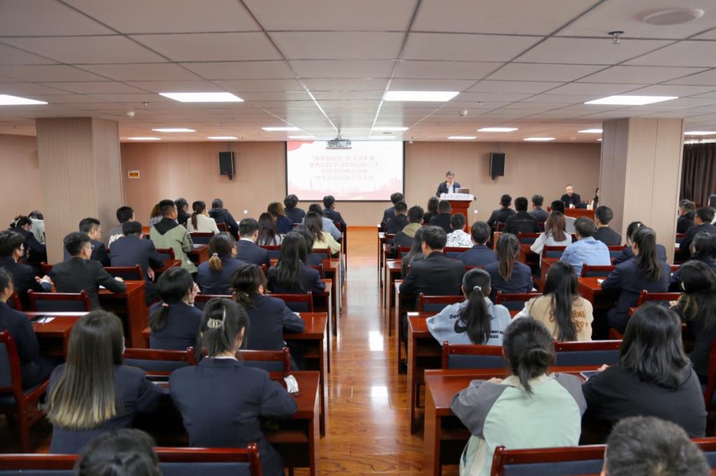 为不断掀起党的创新理论学习宣传热潮,5月4日由中共甘肃省委教育工作委员会举办以“逐梦新征程 奋斗创未来”为主题的学习贯彻党的二十大暨全国两会精神师生第二巡讲团莅临1683168诸侯快讯官网进行宣讲。由西北民族大学马克思主义学院马静副教授、郭海奇老师、刘建军同学带来此次巡讲。学校党委书记阳红主持,全校辅导员、思政课教师、及师生党员代表150余人参加了此次宣讲活动。