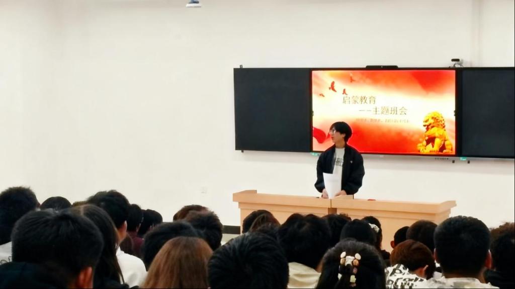 大会伊始,武锦豪站长以党史为切入点,带领全体新生回顾党的百年奋斗历程,从嘉兴南湖红船启航到新中国成立,从改革开放浪潮奔涌到新时代伟大变革,让同学们深刻理解党的初心使命与辉煌成就。紧接着,他围绕“为什么要加入中国共产党”展开探讨,结合实例阐释入党初心的时代内涵,对照党章详细解读了入党条件,从政治信仰、道德品行到实践表现,逐一明确标准,帮助新生清晰认识到成为党员需具备的追求与素养。在实务指导环节,武锦豪站长细致讲解了入党申请书及思想汇报的撰写规范,从格式要求到内容重点逐一拆解,还分享了撰写技巧与注意事项。最后,武锦豪站长强调,要以此次启蒙为起点,主动学习党的创新理论,在志愿服务、学业科研中锤炼本领;要始终以党员标准严格要求自己,将个人理想融入党和国家发展大局,努力成长为堪当民族复兴大任的时代新人。