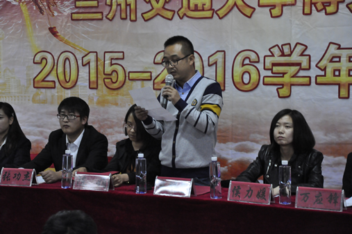 大会初首先由电信工程系柴明喜副主任发言,柴主任分别对上届学生会成员和团总支成员的工作给予充分肯定,对他们的付出和努力表示赞扬与认可,并感谢他们为学院所做出的贡献,同时对新一届团学会成员寄予极大的期望。随后团总支副书记张功杰代表上届团总支干部发言并总结上一学年的工作和取得的成绩。接下来由上届学生会主席万应锋做最后发言,他对在学生会的三年时光做了总结,并由衷的感谢学院老师以及三年来共事过的所有团学会成员,提出了“团学会来自于学生,服务于学生”“不想当将军的士兵不是好士兵”等观点,很好的激励和鼓舞了同学们的斗志。
