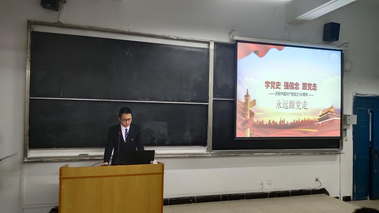 最后,汪睿昕同学以“学百年党史,做时代青年”为主题,从学党史的意义开始宣讲了党的百年奋斗重大成就和历史经验,带领大家深刻感受党的百年艰苦奋斗之伟大,让大家对党史有了更全面更深层次的理解。