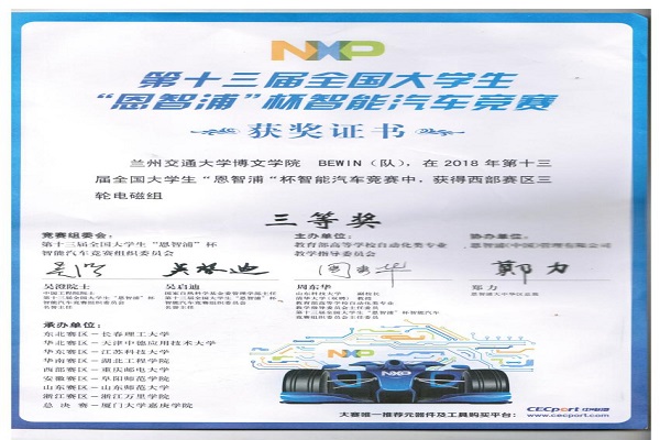 兰州交通大学博文学院电信工程系学生荣获 第十三届全国大学生“恩智浦”杯智能汽车竞赛 西部赛区三等奖