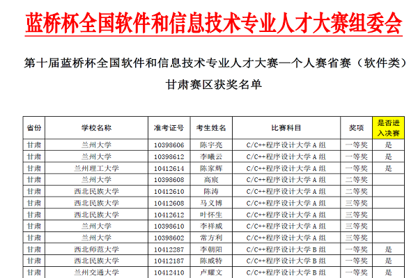 兰州交通大学博文学院电信工程系学生荣获第十届“蓝桥”杯全国软件和信息技术专业人才大赛 甘肃赛区三等奖