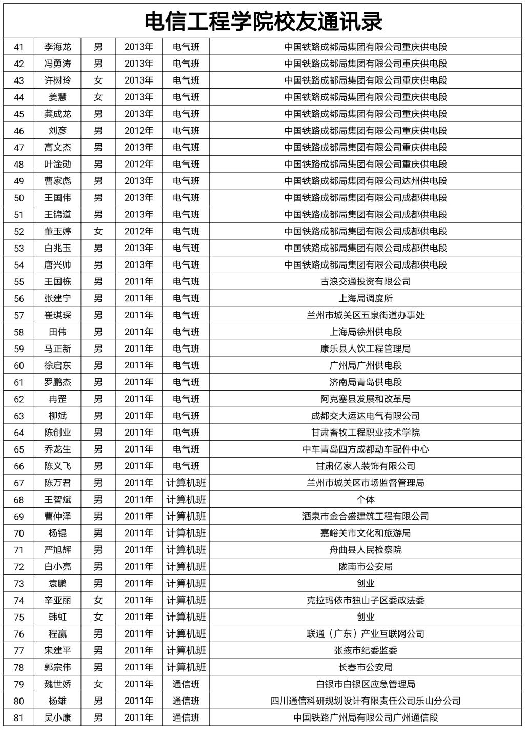 电信工程学院校友录