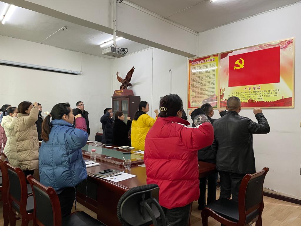 首先,财务处全体党员面对鲜红的党旗,高举右手,一起重温入党誓词,通过宣誓,进一步强化党员意识。