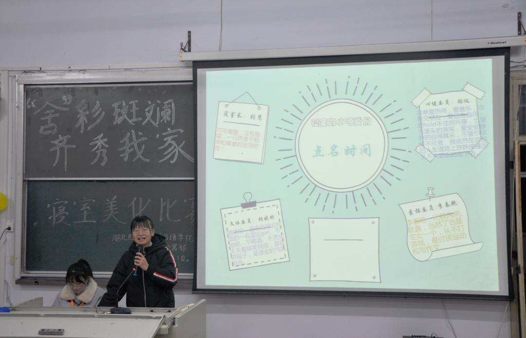 (通讯员 夏澳丽 摄影 蓝雨旋 柴新宇)为进一步推进寝室文明建设,营造良好的寝室文化氛围,12月1日晚,由我院公寓部主办的寝室美化大赛决赛于6402教室顺利开展。我院学生科老师田甜、学生会主席余洪霞、副主席洪程及jinnian金年会公寓部副部长颜福帅担任此次活动评委。