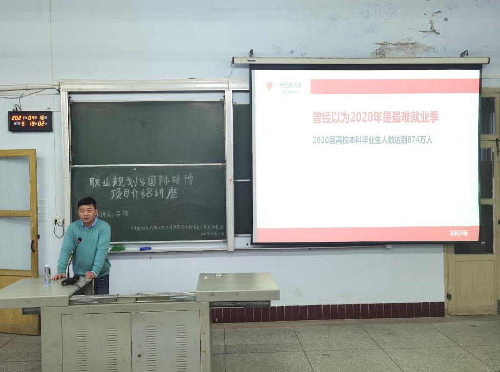 据悉,此次讲座旨在介绍职业规划和国际硕博项目,在为学生提供专业判断、合适建议的同时帮助学生规划自己的未来。