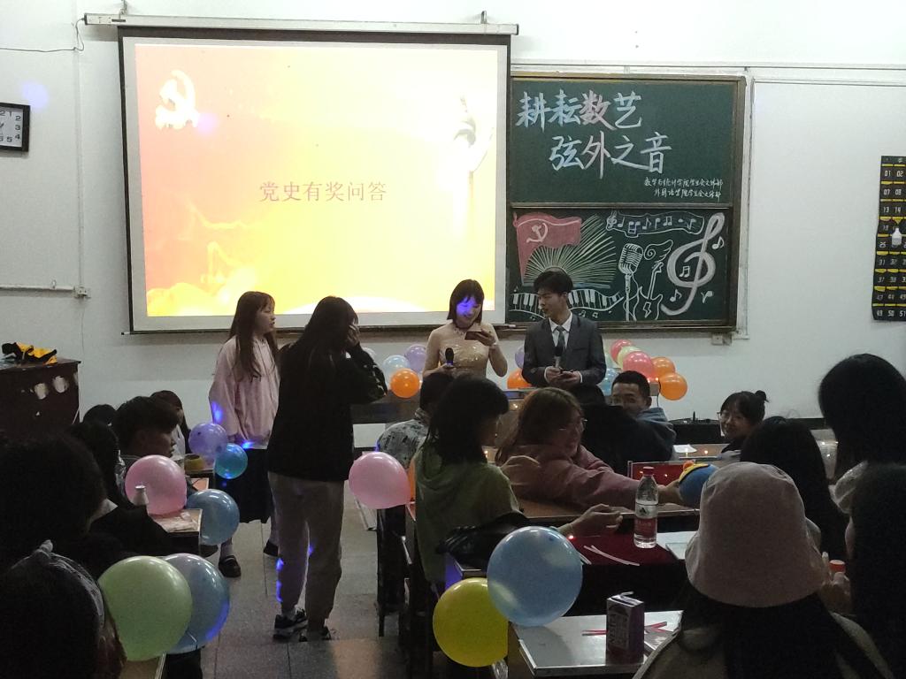 时间:2021-04-19 编辑:学生科 点击:(通讯员 龚倩 摄影 王本权 柴新宇)为了纪念建党一百周年,激励同学们不忘初心,砥砺前行,同时为了丰富校园文化生活,营造昂扬向上、团结奋进、开拓创新的良好氛围,4月17日晚,我院携手数学与统计学院于3307教室成功开展本次活动。本次活动由吕亮亮和李晶担任主持人。外国语学院学生科老师田甜、数学与统计学院学生科科长谭迪和学生代表张琦璇、校学生会代表许一珂担任评委。