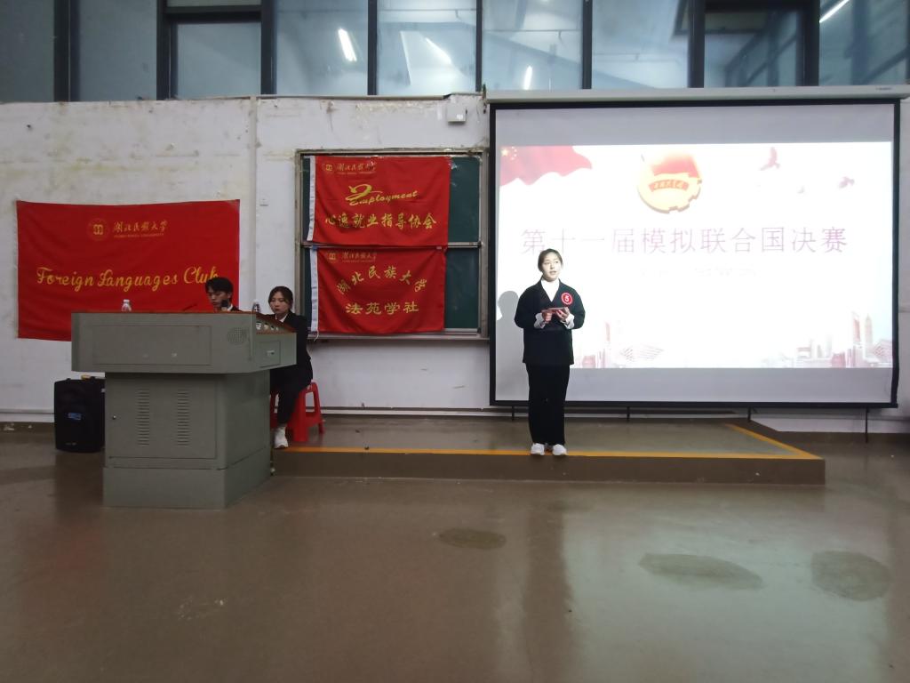 本网讯(记者 魏秋燕)为培养大学生协作精神,进一步扩大学生国际视野,4月23日,外语俱乐部联合法苑学社及心逸就业指导协会在修远楼5B403教室举办以“新型传染病全球防控与治理”为议题的第十一届模拟联合国大赛决赛。此次活动面向金年会全体师生。