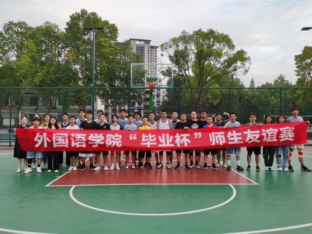 比赛结束后,双方队员进行了合影留念,周代明书记肯定了毕业生们在此次篮球赛中的精彩表现,希望大家激情满怀地投入新的事业,新的学业中去,祝福大家奋斗不息、追梦不止。此次“毕业杯”师生篮球赛是我院2021年毕业季系列活动之一,比赛促进了师生友谊,体现了外国语学院和谐共进的良好氛围。同时学院以此为契机,祝愿2021届毕业生们前程似锦,一帆风顺。
