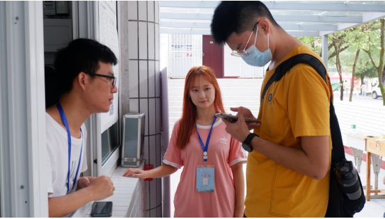 4号迎新活动分为三个时间段:8:00-13:00;13:00-18:00;18:00-22:00;5号为两个时间段:8:00-13:00;13:00-18:00,50名志愿者交替值班。立人八公寓与博学六公寓主要是引导来校新生扫码加入新生群并帮其托运行李至新生寝室。外国语学院服务点主要是为来校新生答疑解惑,志愿者积极的带领新生入院了解并熟悉我院教室、办公室的分布。在公寓的服务点,志愿者们不辞辛苦的帮助来校新生托运行李,主动与新生交谈,增进新老生的感情。