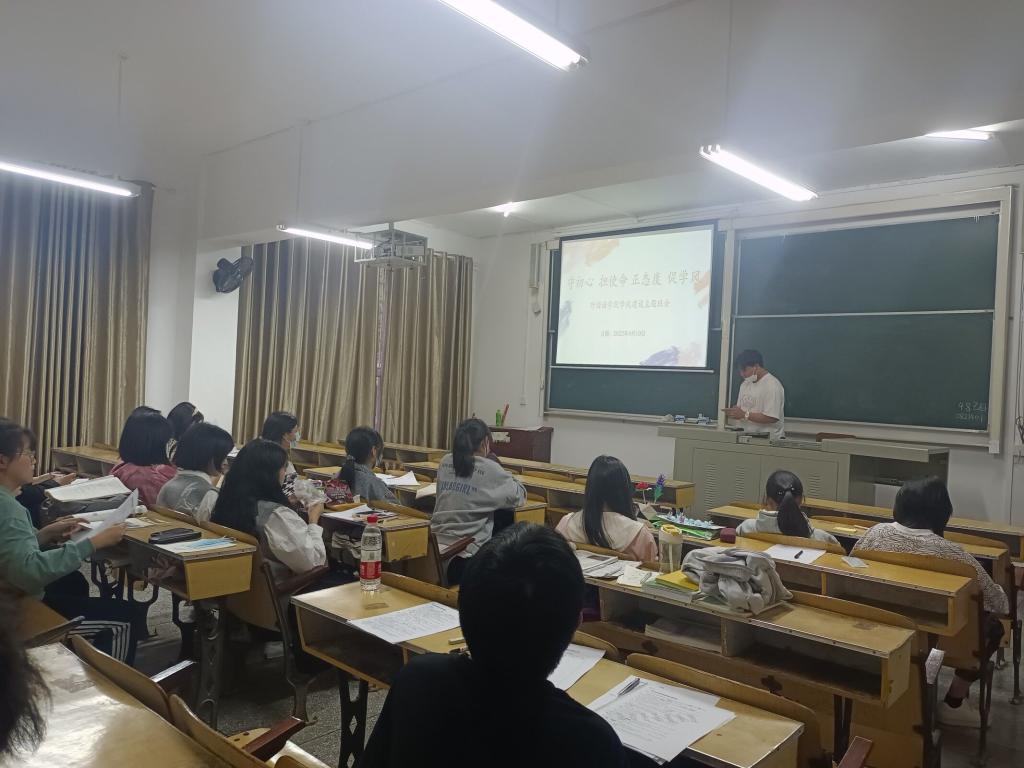 时间:2022-04-11 编辑:学生科 点击:本网讯(通讯员 莫桂荣)桂园多新绿,桃李已知春。为响应学校号召,严格规范自身行为;4月10日晚,外国语学院特开展“守初心 ,担使命 ,正态度,促学风”主题班会。