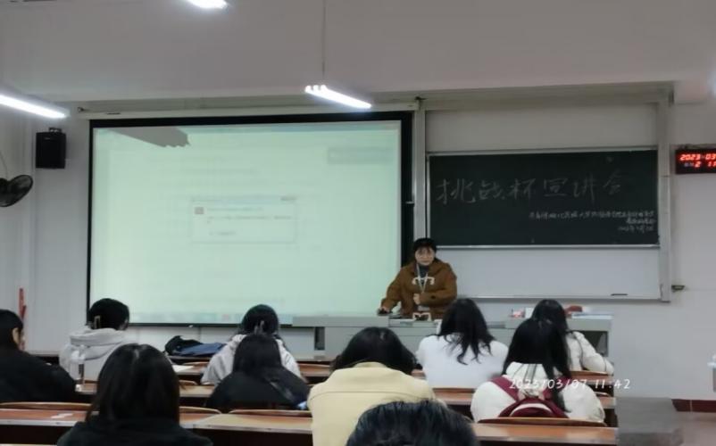 在活动动员阶段,学院素质拓展部通过线上线下相结合的方式进行宣传。在宣讲会上,素拓部部长黄舒柔对本次竞赛类别、要求等相关要点做解读,号召青年学子踊跃参与到本次竞赛中。