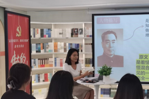 走进倍阅书店,外国语学院辅导员周婷老师正在分享《红星照耀中国》读书心得。“斯诺以一个陌生人的身份来谈对我国几位领袖的初印象,通过他的描述,我们直观感受到了我国领导足以让一个外国记者折服的个人魅力……”学生们专心聆听,认真做笔记。“党旗红·青春行”读书分享会系列活动立足书香社区服务站的文化区角和社区书店,以阅读红色典籍为重点,引导学生学习党的著作原文,涵养“爱读书、读好书、善读书”的良好习惯。
