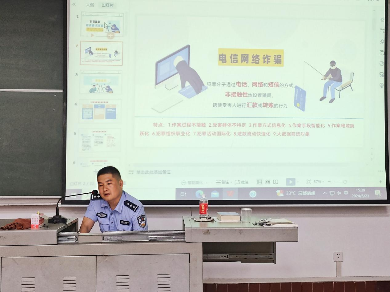 随着信息技术的飞速发展,电信网络诈骗已经成为影响群众财产安全的严重问题,其中尤以广大学生群体为甚。为应对这一挑战,刘杰警官以一系列真实案例为引,深入剖析了电信网络诈骗的种种手法和陷阱,让同学们对这类犯罪有了更为直观和深刻的认识。