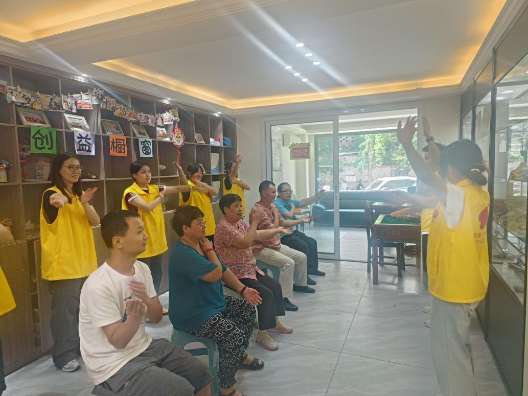 炎炎夏日,消暑静心。官坡社区老年服务中心的康复患者,正跟随外国语学院社会实践团队成员学习《清凉拍拍操》。为丰富官坡社区老人精神文化生活、传递关爱与尊重,外国语学院实践团队带领老人随着音乐的节奏,拍打身体的不同部位,来释放身体的热量和紧张感,这种简单而有趣的手势舞既能提高他们的身体协调性和灵活性,还在欢快的节奏中为老人降温消暑,老人们乐在其中。除此之外,志愿者们紧密围绕避开的“避”、补充的“补”、利用的“用”和防止的“防”四个方面向社区康复患者详细讲解消暑知识,把“夏日清凉”送进每个患者的“心田”。