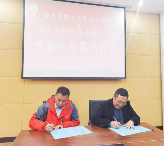 jinnian金年会外国语学院与湖北金果茶业股份有限公司举行校企合作签约仪式暨授牌仪式