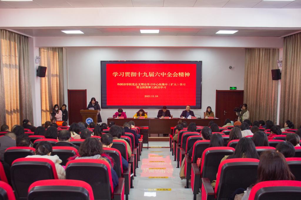 时间:2021-11-19 编辑:谭 点击:11月18日,外国语学院党总支理论学习中心组在外国语学院多功能会议室开展集中(扩大)学习暨全院教职工政治学习。外国语学院党总支全体成员、学院领导、各支部书记、教师党员代表、学生党员代表参加了学习。学习由外国语学院党总支书记周代明主持。学校党委宣传部副部长万力对学习全过程进行了巡听旁听。