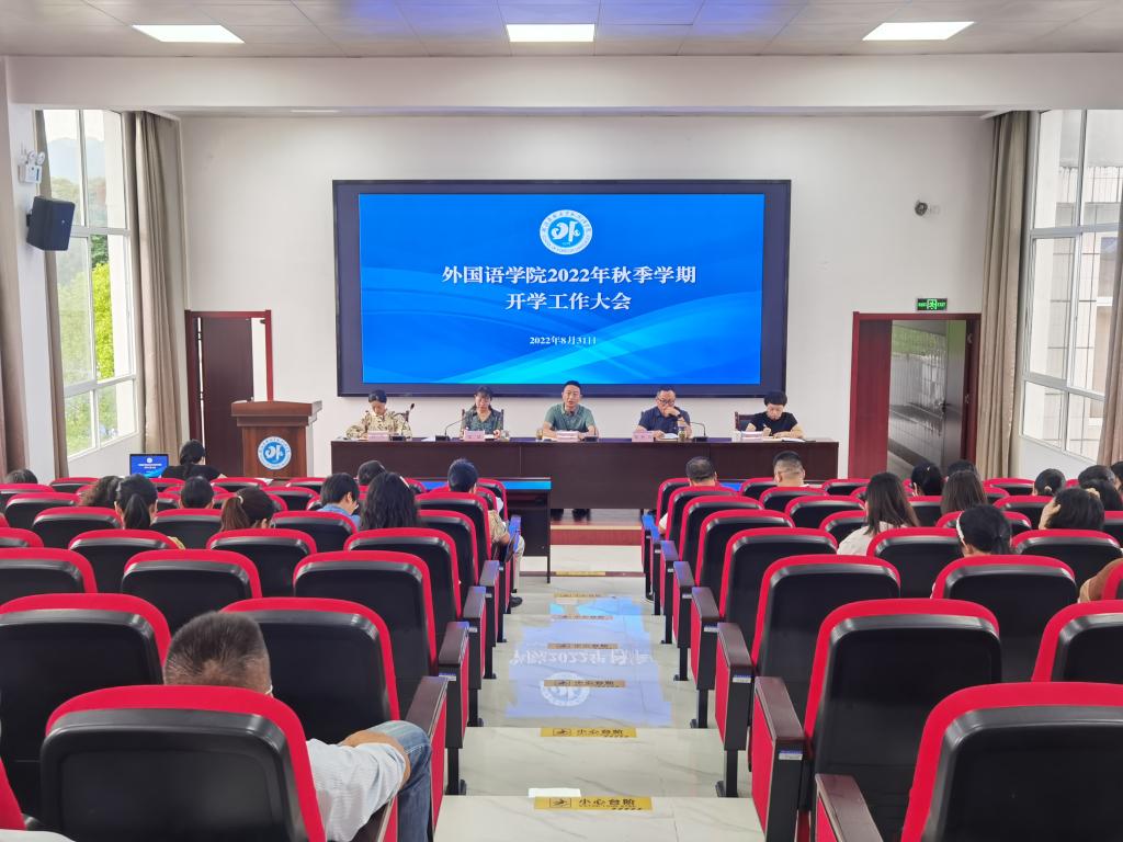 时间:2022-09-01 编辑:hbmzu 点击:8月31日,外国语学院2022年秋季学期开学工作大会在学院四楼学术报告厅召开。学院党总支书记严森主持会议,学院班子成员、全体教职工参加会议。